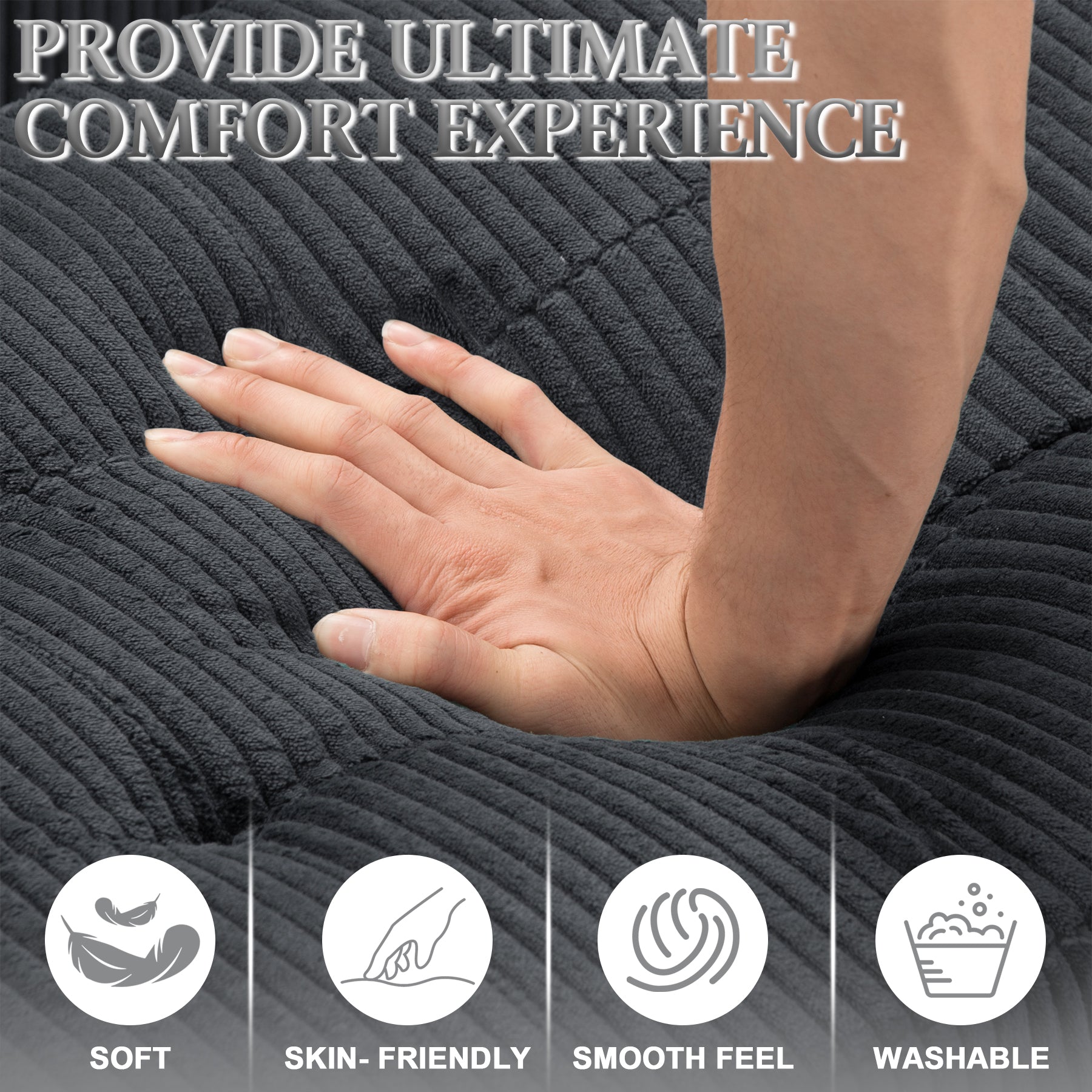- 【Ultimate Comfort】: Experience unmatched comfort with our fluffy sectional couches set,Available in 5 colors, includes 5 toss pillows and ottomans. This l-shaped fluff sectional sofa set made from high-quality foam and soft corduroy fabric,offers a luxurious feel, and the cozy corduroy provides a plush seating experience, making it perfect for relaxation.